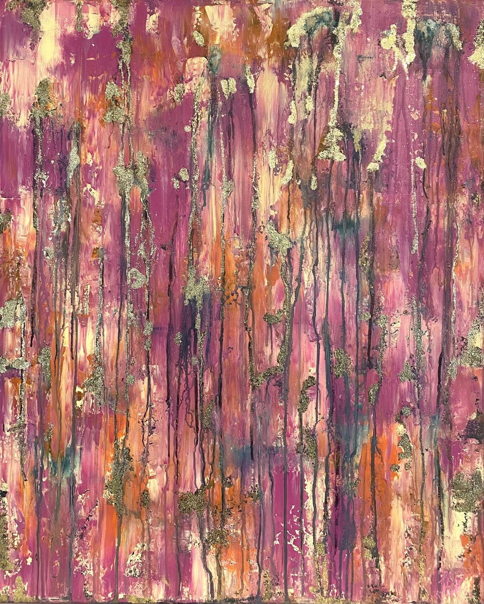 Acrylic and gold leaf on canvas.