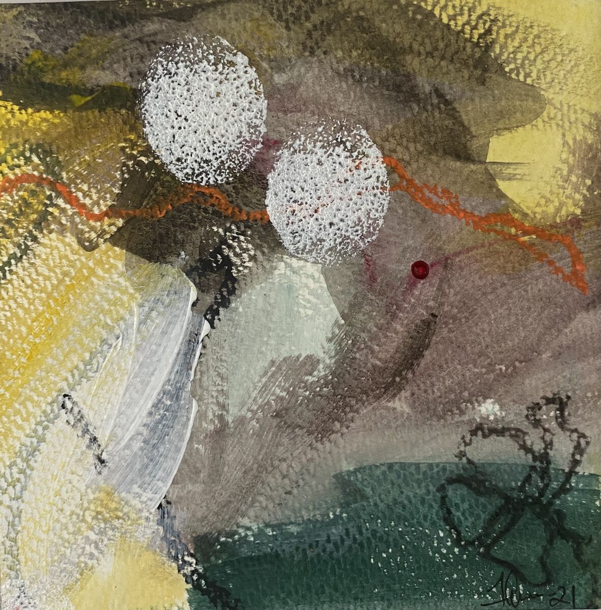 Acrylic on paper, mounted in white passepartout, 22 × 22 cm.