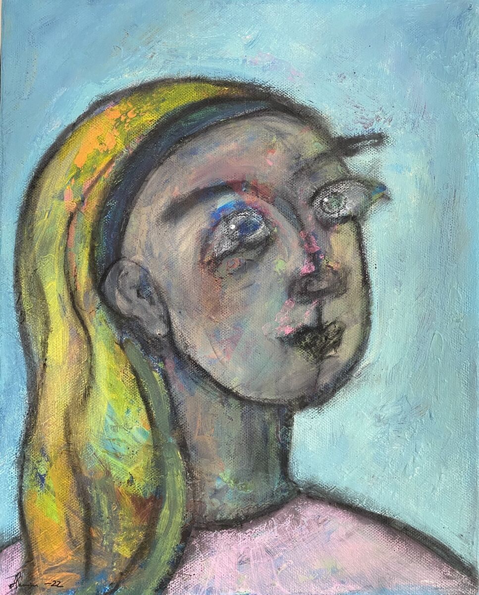 Mixed media. Acrylic, charcoal and tissue paper on canvas.