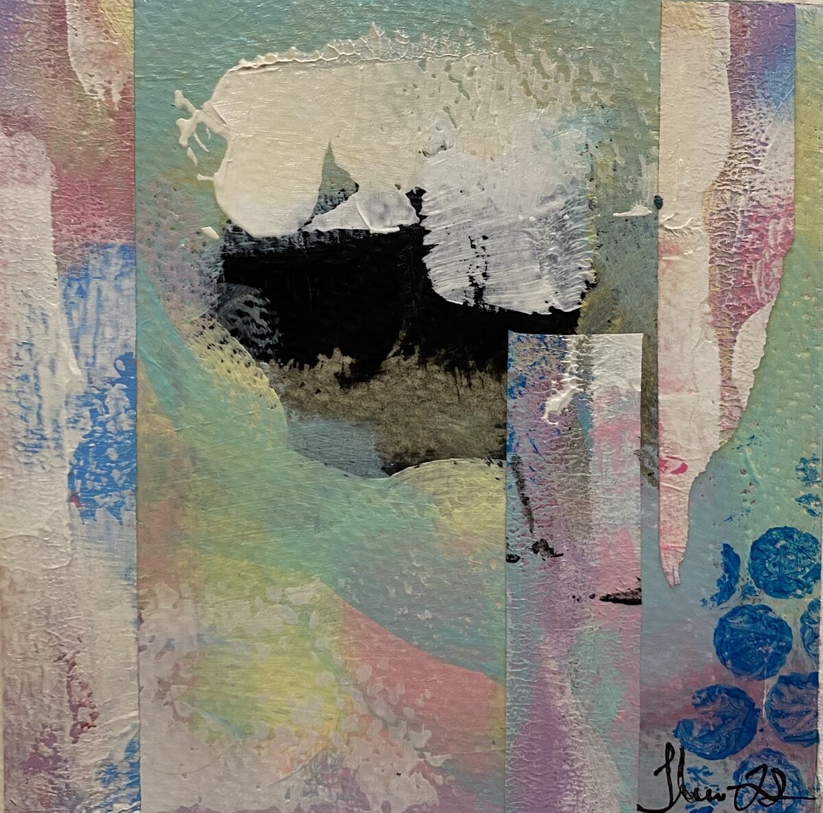 Acrylic and mixed media on paper, mounted in white passepartout, 22 × 22 cm.