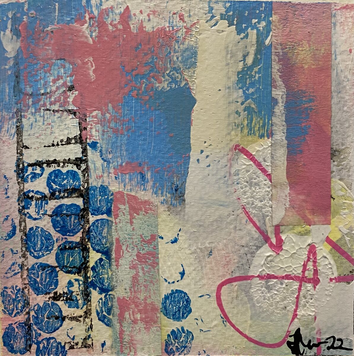 Acrylic and mixed media on paper, mounted in white passepartout, 22 × 22 cm.