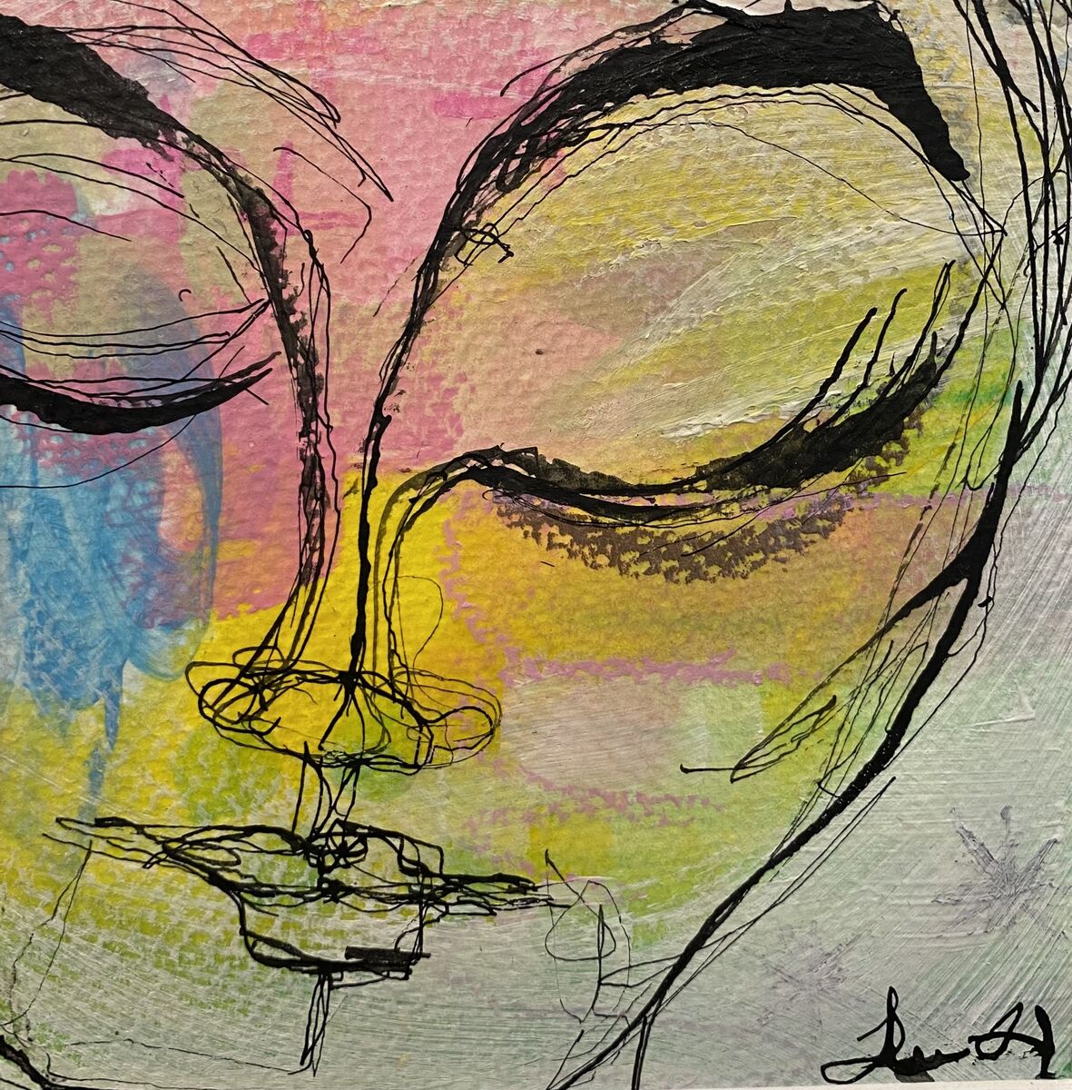 Acrylic and ink on paper with passe-partout. Including passepartout 22x22cm.