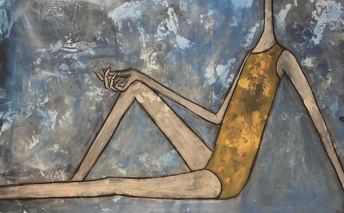 Acrylic, oil pastels and charcoal on canvas. Framed.